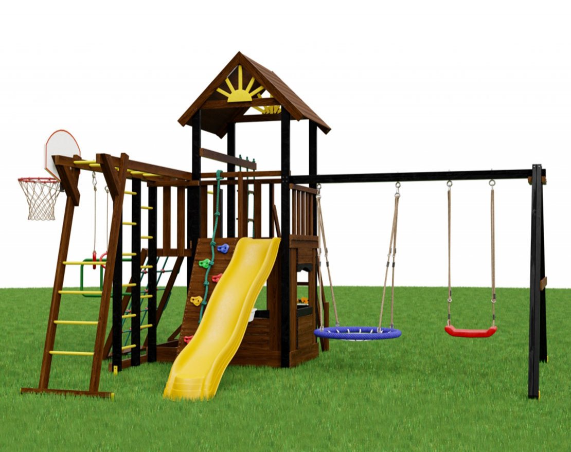 Спортивные модули расположены так, что дети не будут мешать или представлять опасности друг другу. Купить игровую площадку Флорида 6 стоит даже на небольшой участок. При всей своей компактности она очень функциональна и позволит обустроить двор с пользой для детей.