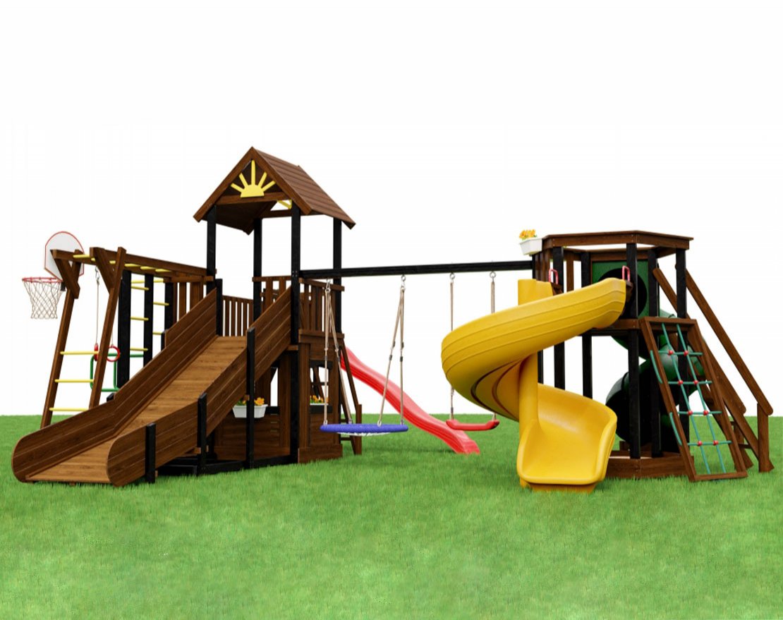 Игровая площадка Флорида 8 спроектирована таким образом, что на ней не будет тесно даже нескольким детям. Она дополнена второй башней с песочницей на первом этаже и двумя винтовыми горками. Кроме развлекательных, в конструкции продуман комплекс спортивных модулей. Занятия на них помогут развить физические возможности ребенка, зародят любовь к спорту и активному времяпрепровождению, отвлекут от гаджетов.