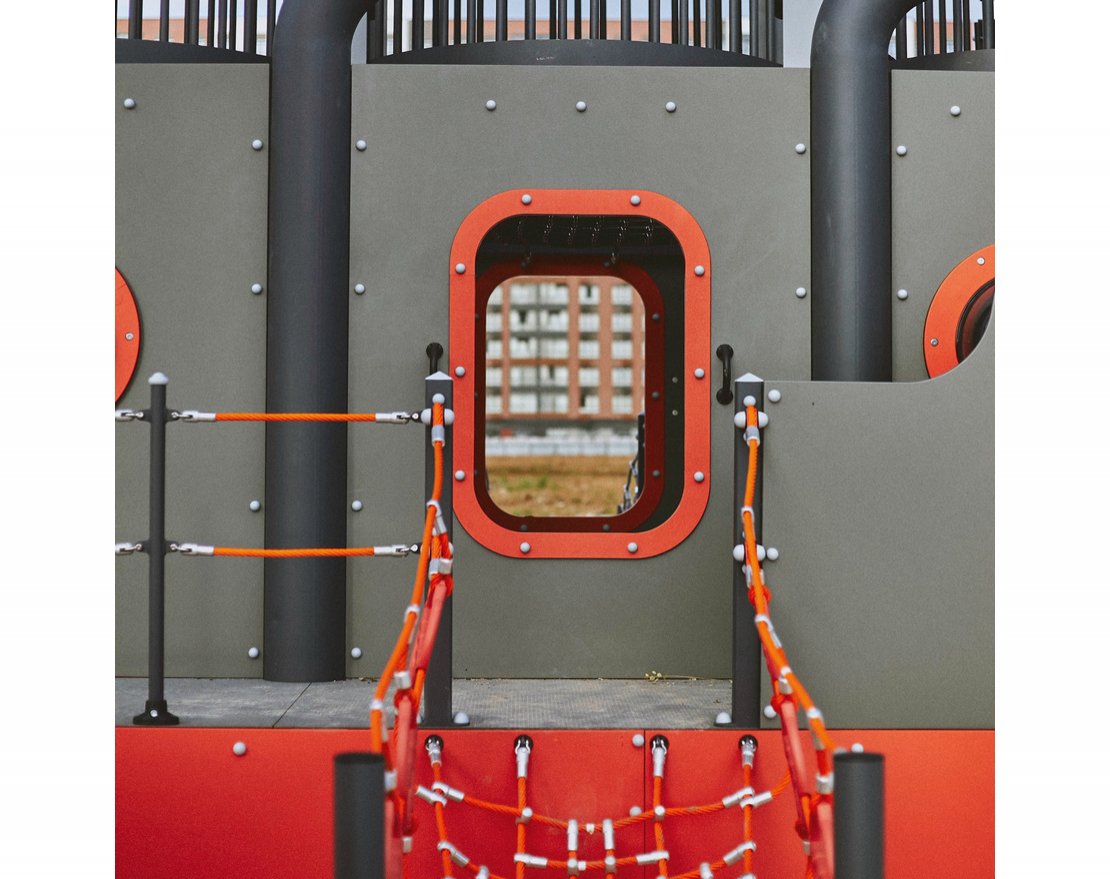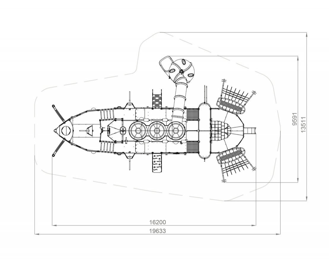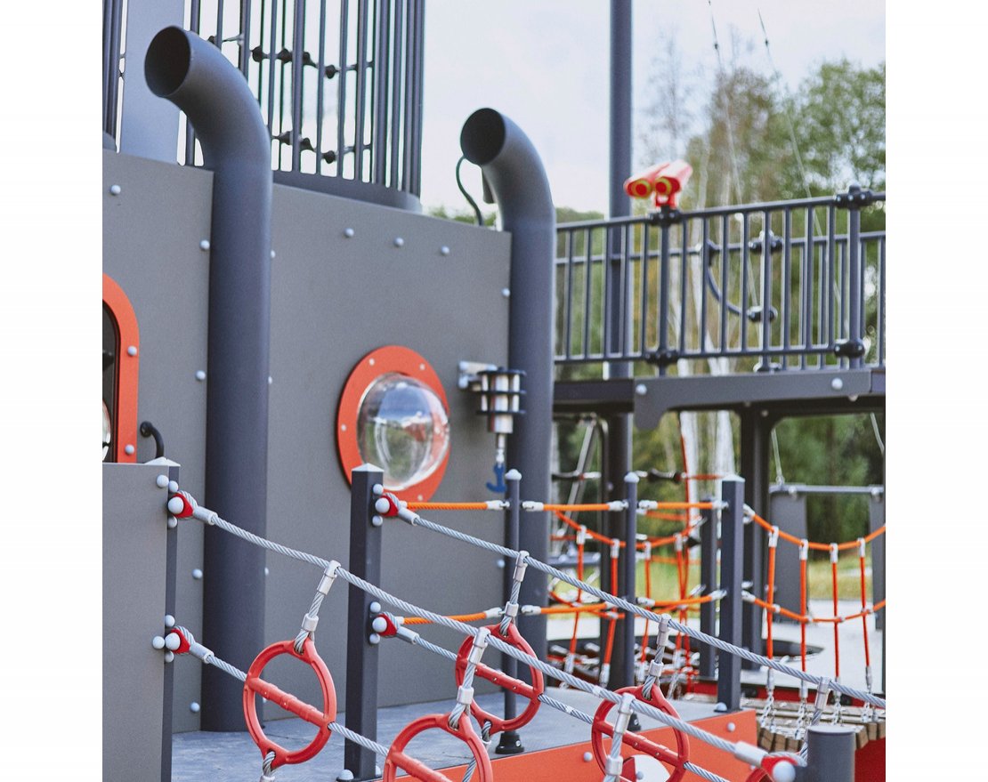 Представляет собой крейсер. Оснащен канатными сетками-переходами, лестницами, подвесными мостиками, трубами для лазания, пластиковыми уступами и металлическими горками с защитными бортиками. Также в конструкции установлены различные игровые элементы: подзорная труба, бинокль, иллюминаторы, мачта, трап, артиллерийское орудие, эхолоты и лодки, изготовленные из стальных труб и сеток.