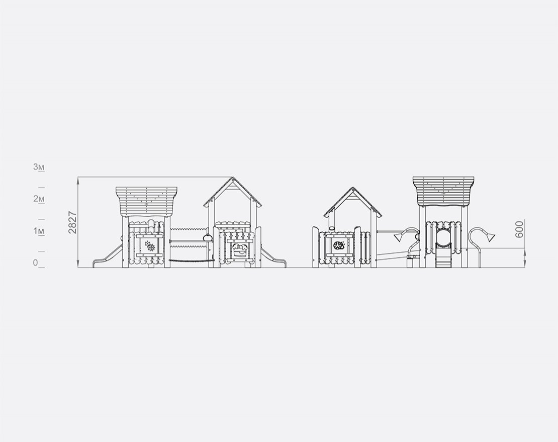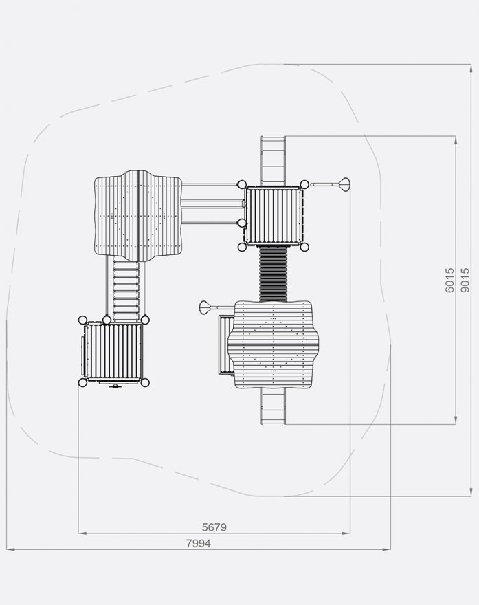 Состоит из опорных стоек, подвесного мостика, интерактивных панелей, металлической горки с защитными бортиками и гофрированной трубой. Для большего комфорта и безопасности, конструкция оснащена ручками-стропами.