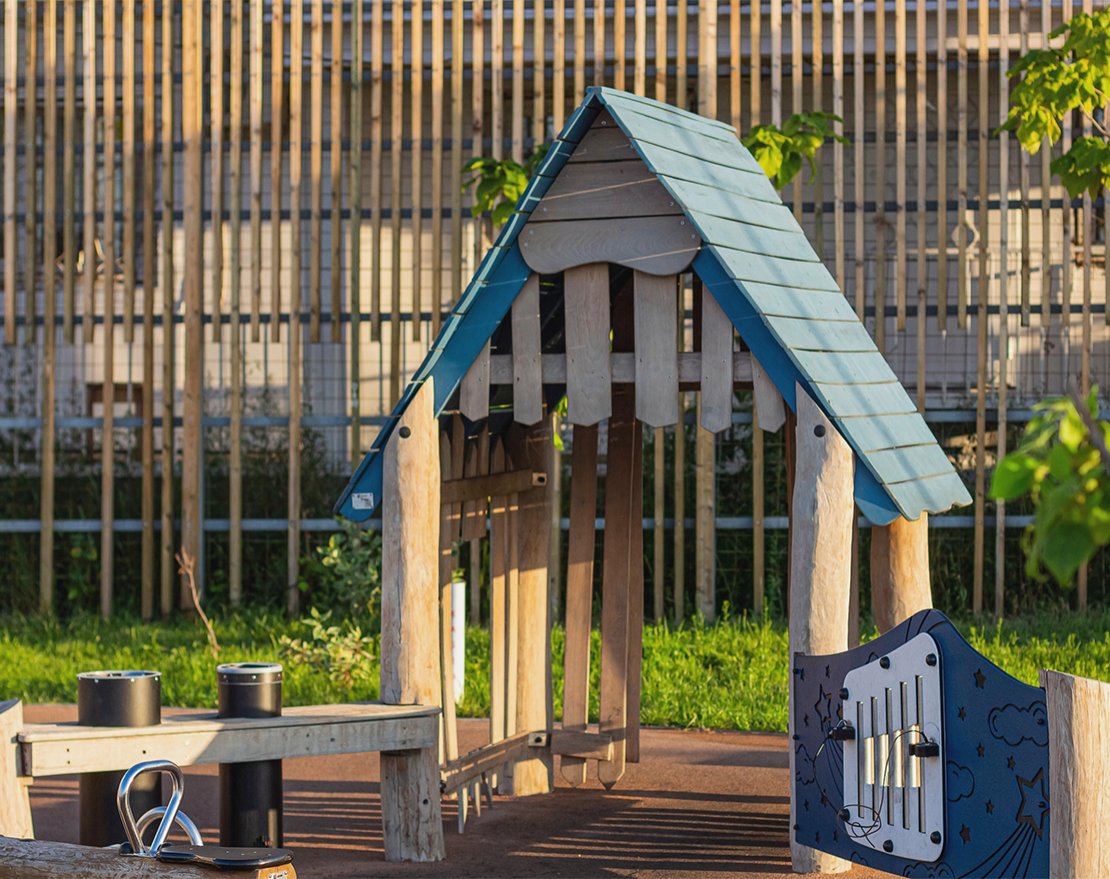 Представляет собой сквозной домик с крышей, столиком, игровой панели и панели с музыкальными инструментами — барабанами. Внутри домика установлены интерактивные панели.