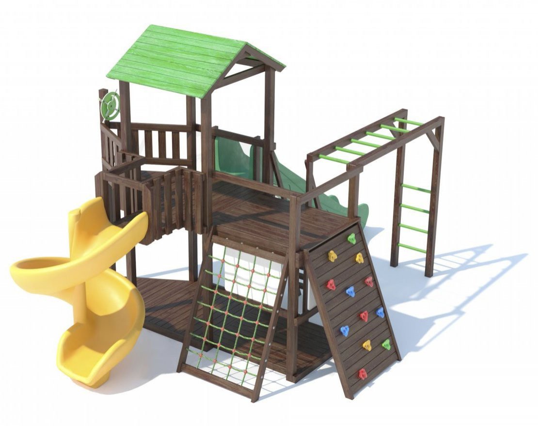 Надежная и долговечная детская игровая конструкция (конструктор) из древесины сибирской лиственницы для детской площадки в зонах общественного пользования: парки, скверы, дворы многоквартирных домов, территории детских садов, школ и торгово-развлекательных центров, коттеджные поселки. Поможет организовать интересный досуг детям и отлично сочетается с городским и природным ландшафтом.