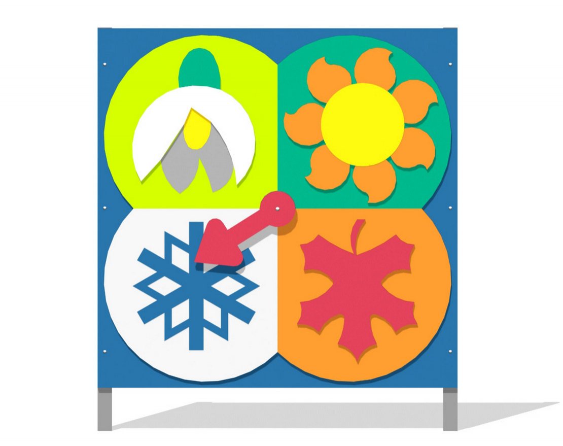 Игровой щит предназначен для дополнения прогулочной площадки детского сада. Отмечая закономерность ЗИМА-СНЕЖИНКА, ЛЕТО-СОЛНЫШКО и т. д. дети учатся выстраивать простые логические связи, а привлекательный дизайн изделия служит отличным украшением детской площадки.