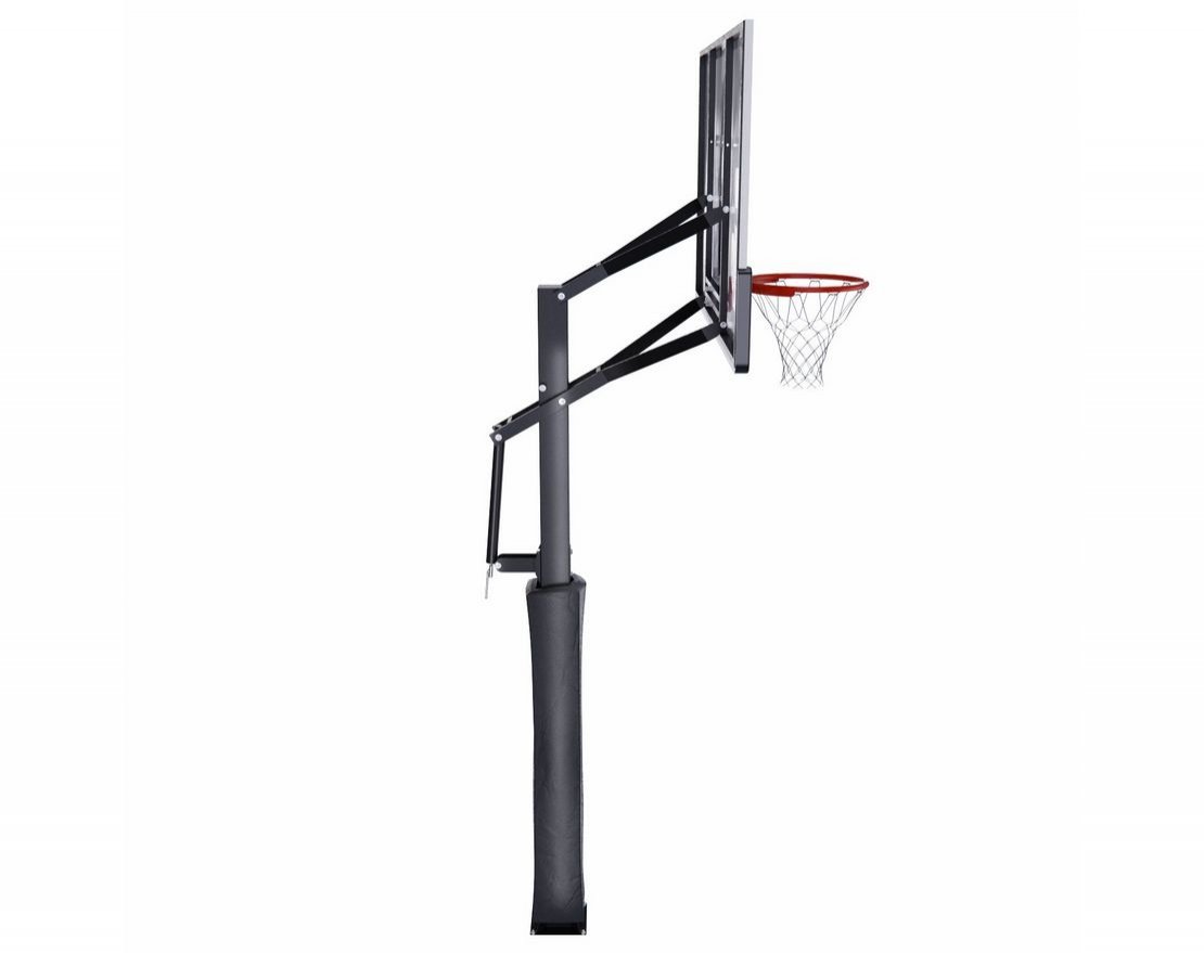 Стационарная баскетбольная стойка относится к стойкам клубного уровня. Благодаря щиту из закаленного стекла толщиной 10 мм и размерностью 180 х 105 см (72’’), вы получите максимальное удовольствие от игры. По периметру щит имеет кант из металла. В нижней части щита и на стойке установлено защитное покрытие Poly Pade. Стойка комплектуется кольцом с амортизацией, которое выдерживает нагрузку до 250 кг в передней части.