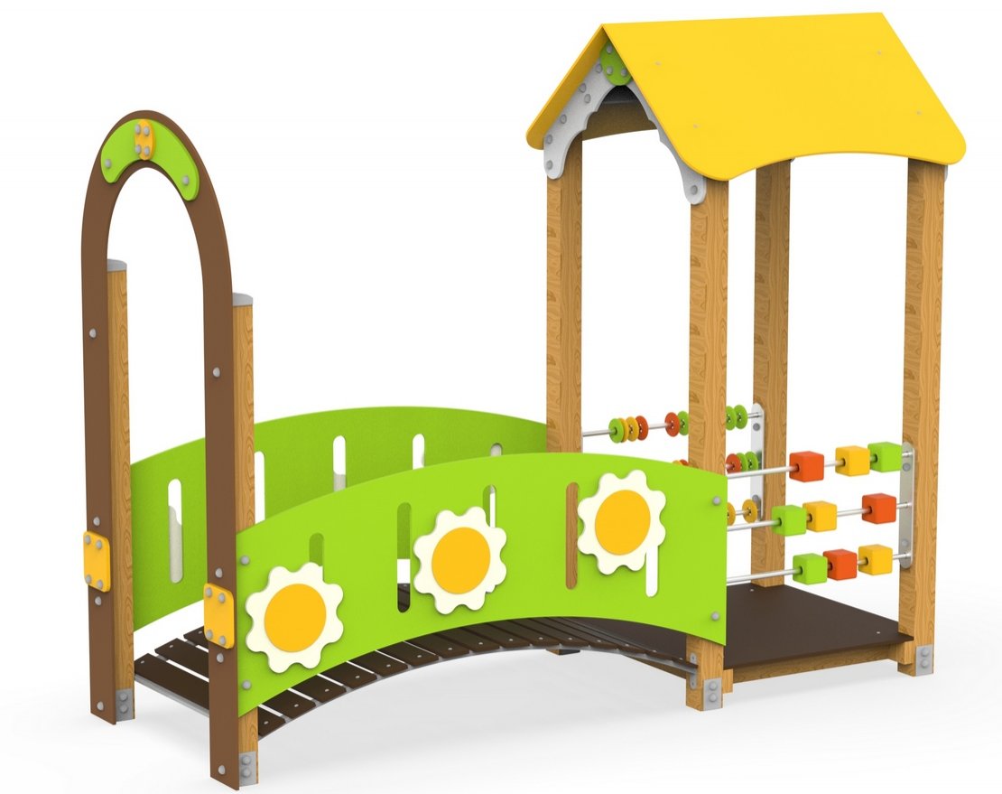 Домик-мостик предназначен для организации детского досуга на детских площадках в детских садах, школах, парках, дворах и местах отдыха. Домик представляет собой сборно-разборную конструкцию для игры и отдыха ребенка.