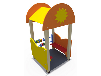 Несущие столбы должны быть выполнены из клееного бруса сечением 90х90 мм. Снизу столб должен заканчиваться металлическим подпятником сечением Ø 42 мм, который бетонируется в землю. Наверху домика двухскатная крыша и арки с обеих сторон, выполненные из фанеры 18 мм. Деревянные детали должны быть тщательно отшлифованы, загрунтованы и окрашены профессиональными двухкомпонентными красками в заводских условиях. Боковые стенки изготовлены из влагостойкой окрашенной фанеры толщиной 18 мм. Размер пола не менее 1000х1000 мм, из ламинированное фанеры толщиной 18 мм.