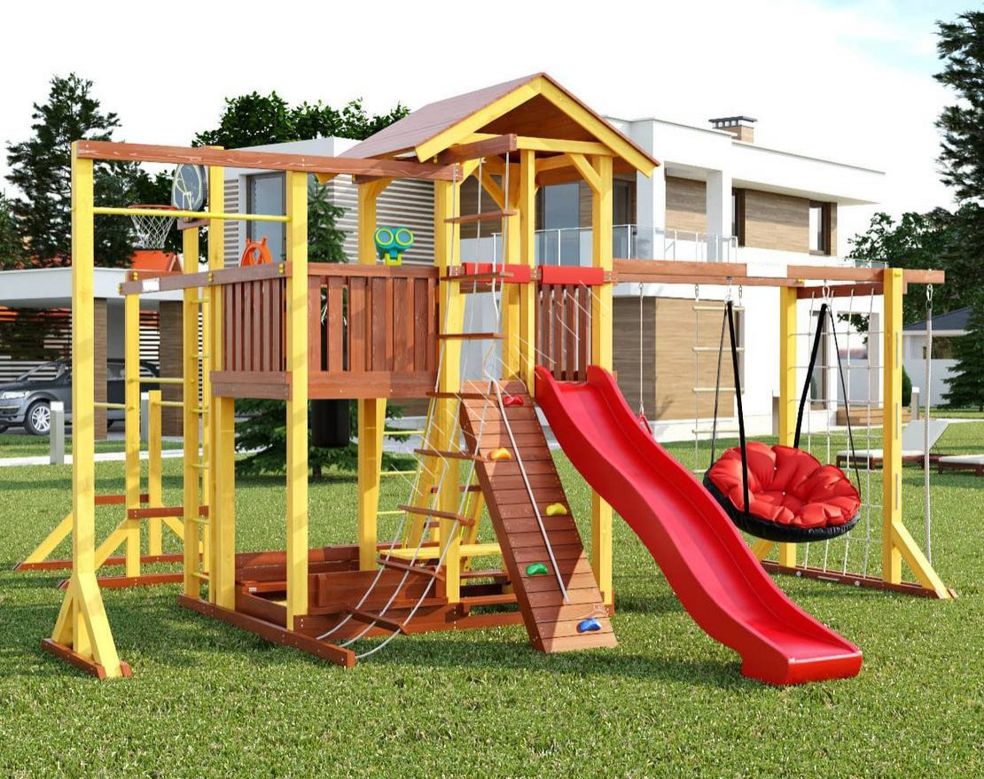 Площадка создана с акцентом на надёжность, качество и долговечность. Она оснащена современными и безопасными элементами, которые подходят для активных игр всех возрастов.