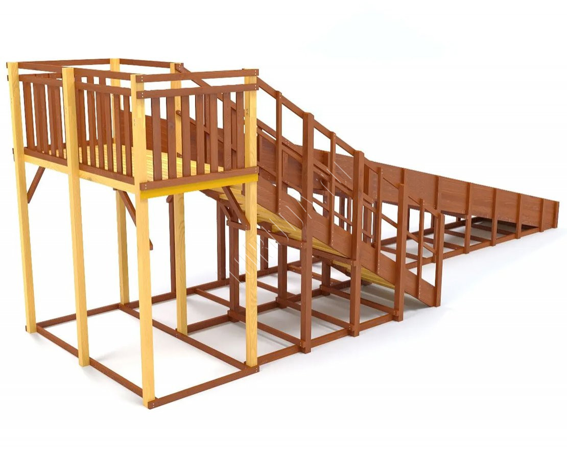Все поверхности тщательно шлифуются на специальных станках, а углы скругляются. Площадка горки имеет дополнительные ограждения – позаботились о безопасной игре ваших детей.