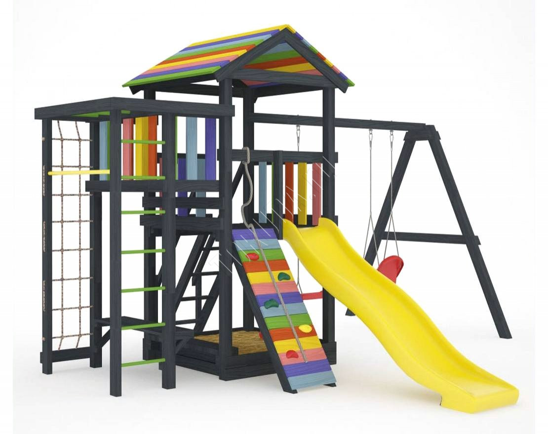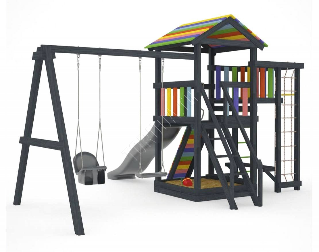 Детская площадка обладает довольно широким функционалом, предназначена для дачи, коттеджа.