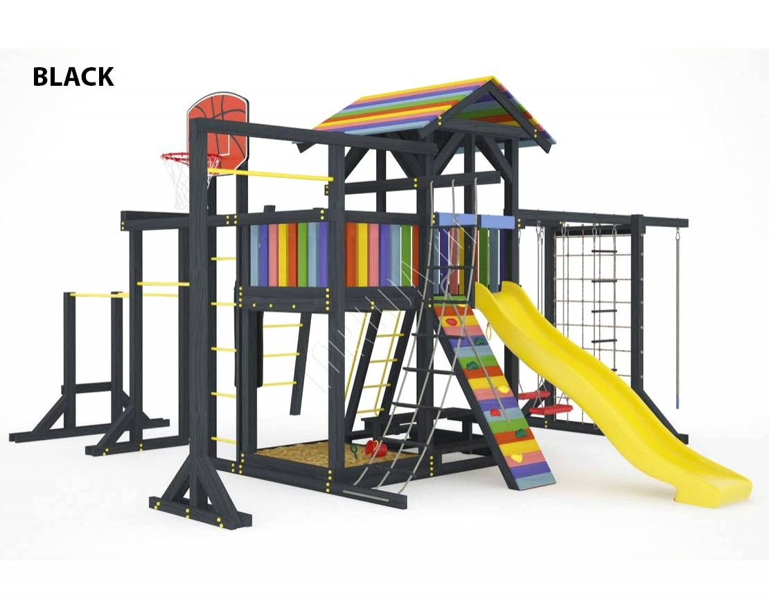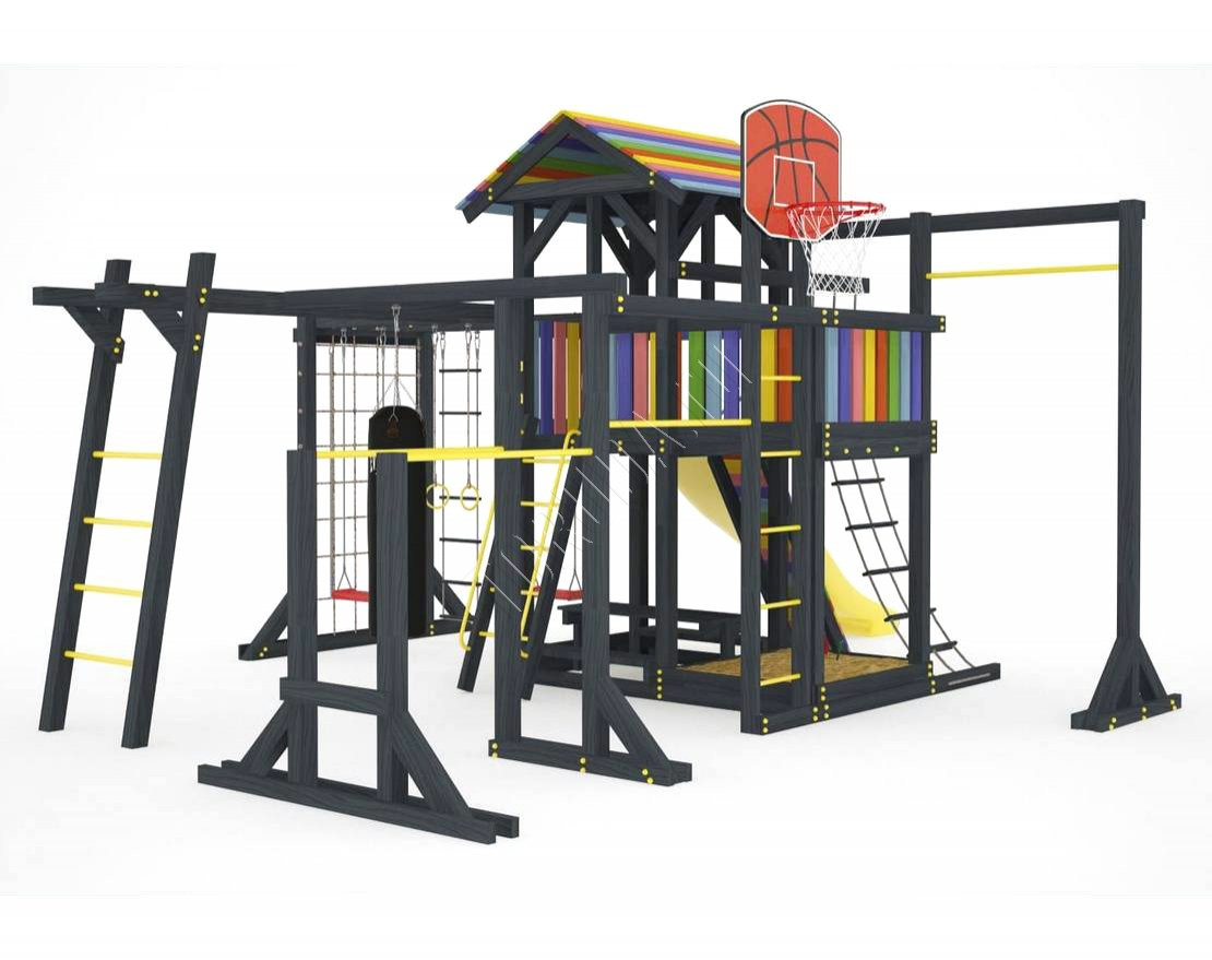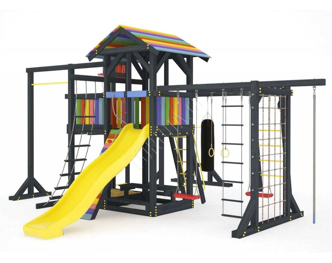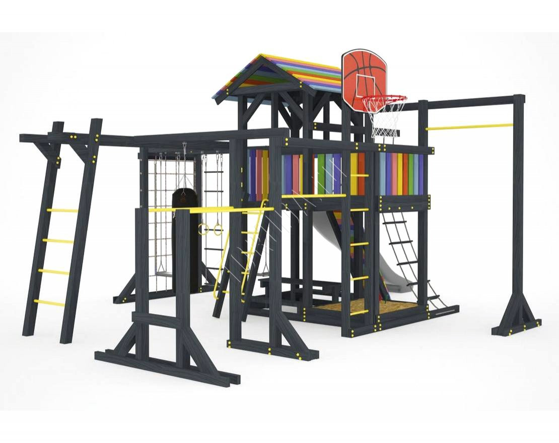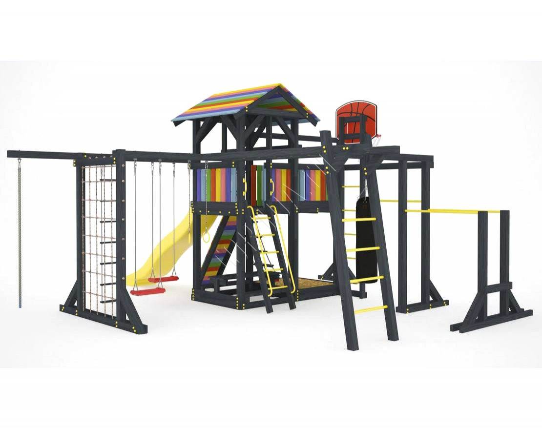 Детская площадка обладает довольно широким функционалом, предназначена для дачи, коттеджа.
