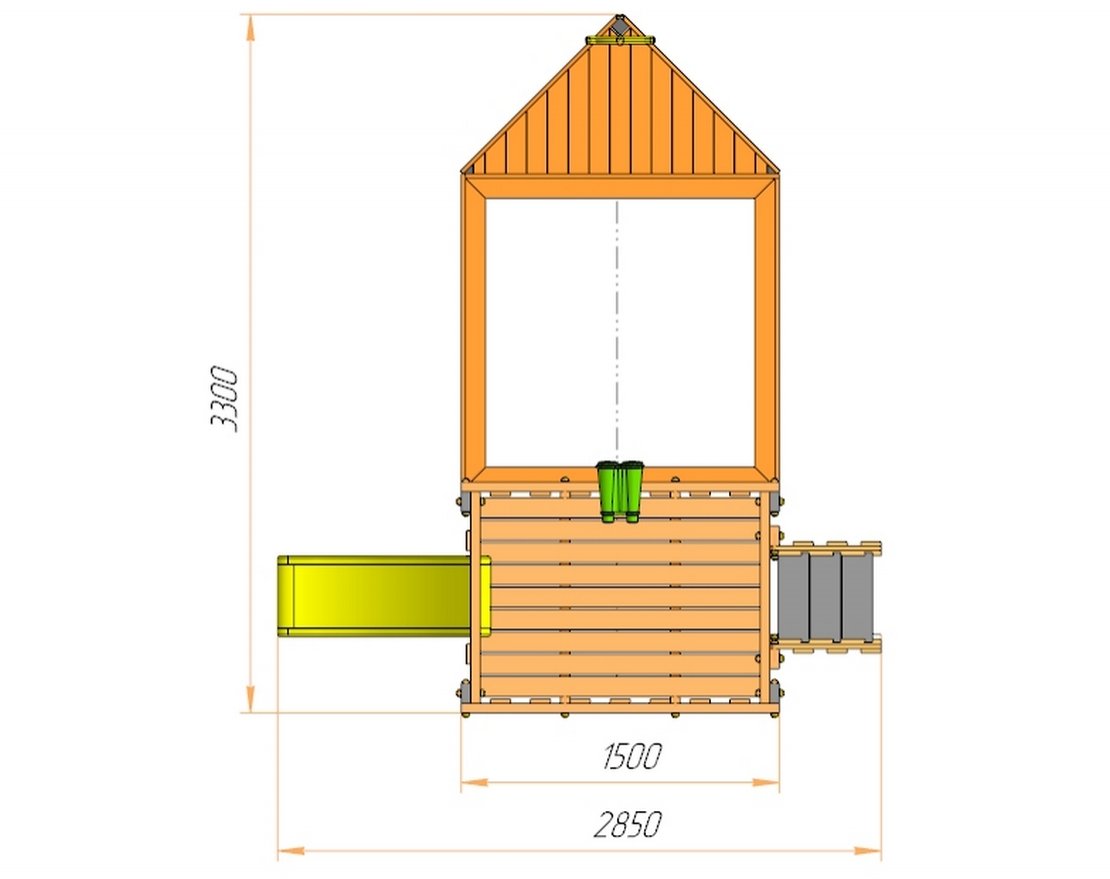 Габариты комплекса: 3300 мм х 1500 мм х 1300 мм.