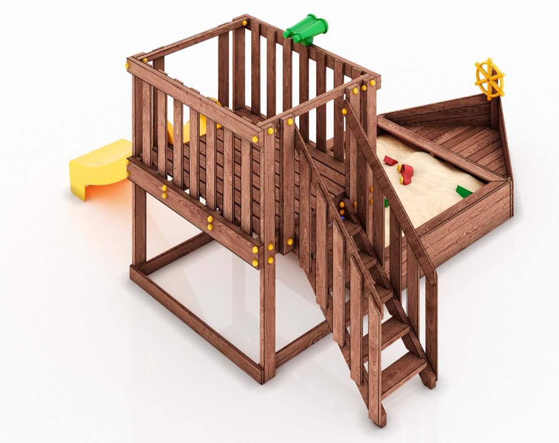 Детская песочница-кораблик и капитанский мостик с горкой с высоты 900 мм.