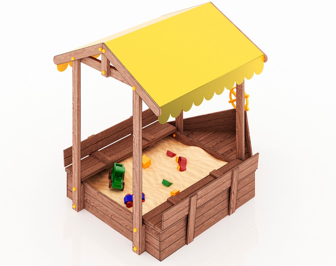 В рабочем разложенном состоянии по бокам песочницы расположены удобные лавочки. После завершения игры песочницу можно легко сложить, превратив боковые лавки в крышу песочницы.