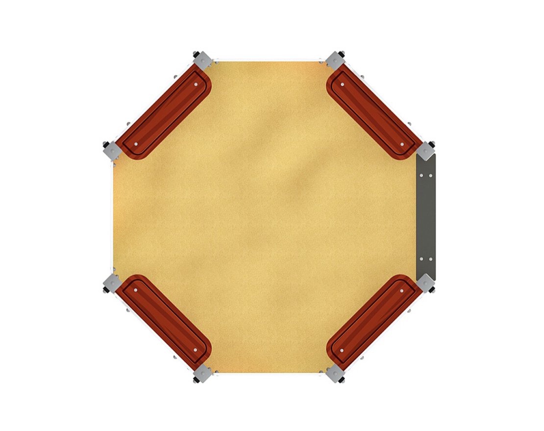 В целях безопасности все отдельно выступающие детали и резьбовые соединения закрыты пластиковыми колпачками, края болтов закрыты пластиковыми заглушками. Закладные детали опорных стоек – двойное порошковое окрашивание.