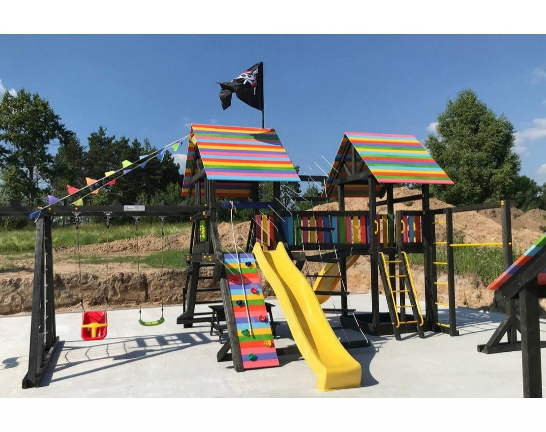 Детская площадка обладает довольно широким функционалом, предназначена для дачи, коттеджа.