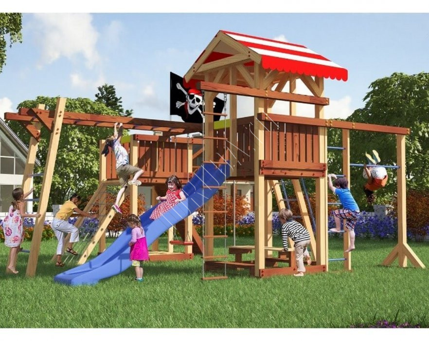 Площадка Галиот 17 обладает довольно широким функционалом (который по желанию можно легко расширить). Детская площадка предназначена для дачи, коттеджа.