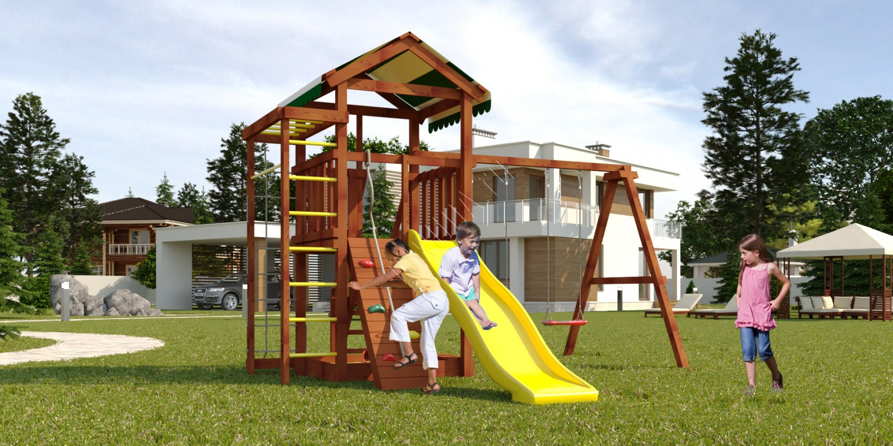 Альпинисты будут взбираться по скалодрому, использовать свисающий канат в помощь или нет, пусть выбирают сами, и наматывать круги по рукоходу. Моряки важно зайдут по лестнице с поручнями на самый верх башни и будут наблюдать за обстановкой в море, а потом молниеносно спустятся вниз с синей горки. Маугли или Тарзан ловко вскарабкаются по сетке-лазалке или шведской стенке, точно найдут клад в песочнице и поделят сокровища на лавочке рядом с ней. И что точно сделает каждый из героев – полетает на сказочных качелях, это одно из любимых детских развлечений.