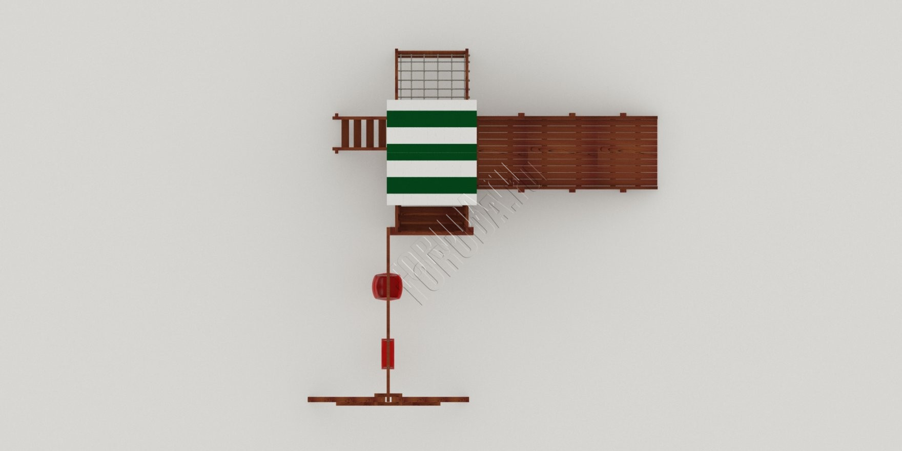 Центром площадки является игровая башня с высотой платформы 1200 мм и крышей, покрытой тканью или деревом. Забраться на башню можно несколькими способами: