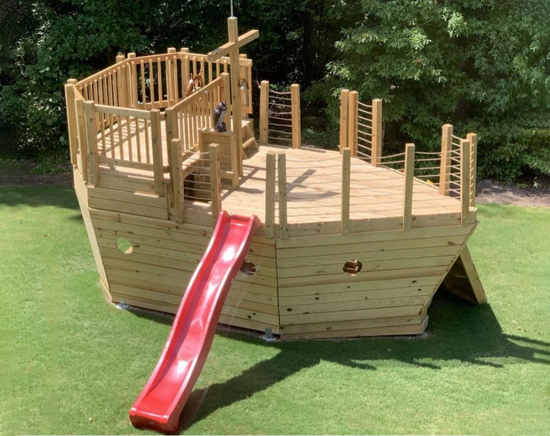 Для игр в конструкции предусмотрены 2 этажа. В трюме вырезан дверной проём. Для подъёма на палубу с улицы можно использовать специальный шест, скалодром с удобными захватами и трап с перилами. Внутри установлена удобная лесенка. Над смотровой площадкой со штурвалом закреплена двускатная крыша. Рядом находится лесенка для подъёма в воронье гнездо, откуда можно наблюдать за обстановкой во время игры.