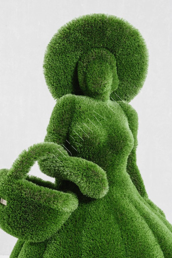 Объемная зеленая фигура топиари девушка с корзиной является современным трендом в украшении ландшафтного дизайна, выглядит мягкой и пушистой приятна на ощупь, нравятся всем без исключения взрослым и детям, а так же эти зеленые скульптуры являются постоянными участниками селфи и оригинальных фотосессий.
