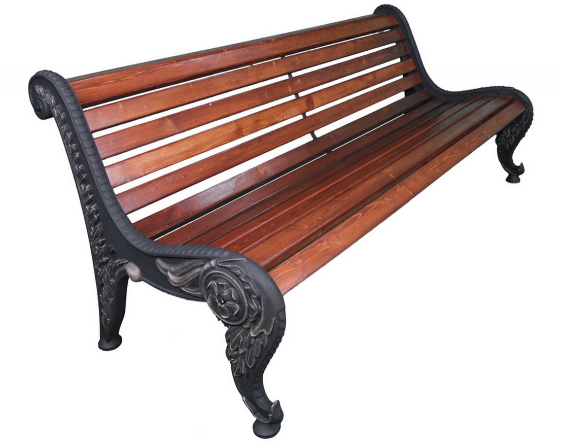 Скамейка Астра отличается продуманным дизайном, плавностью линий, надежностью и долговечностью. Устойчивость конструкции обеспечивают массивные опоры из художественного чугунного литья. Сиденье и спинка выполнены из ангарской сосны, обработанной современными лакокрасочными материалами. Плавный переход от сиденья к спинке обеспечивает сидящим максимальный комфорт.