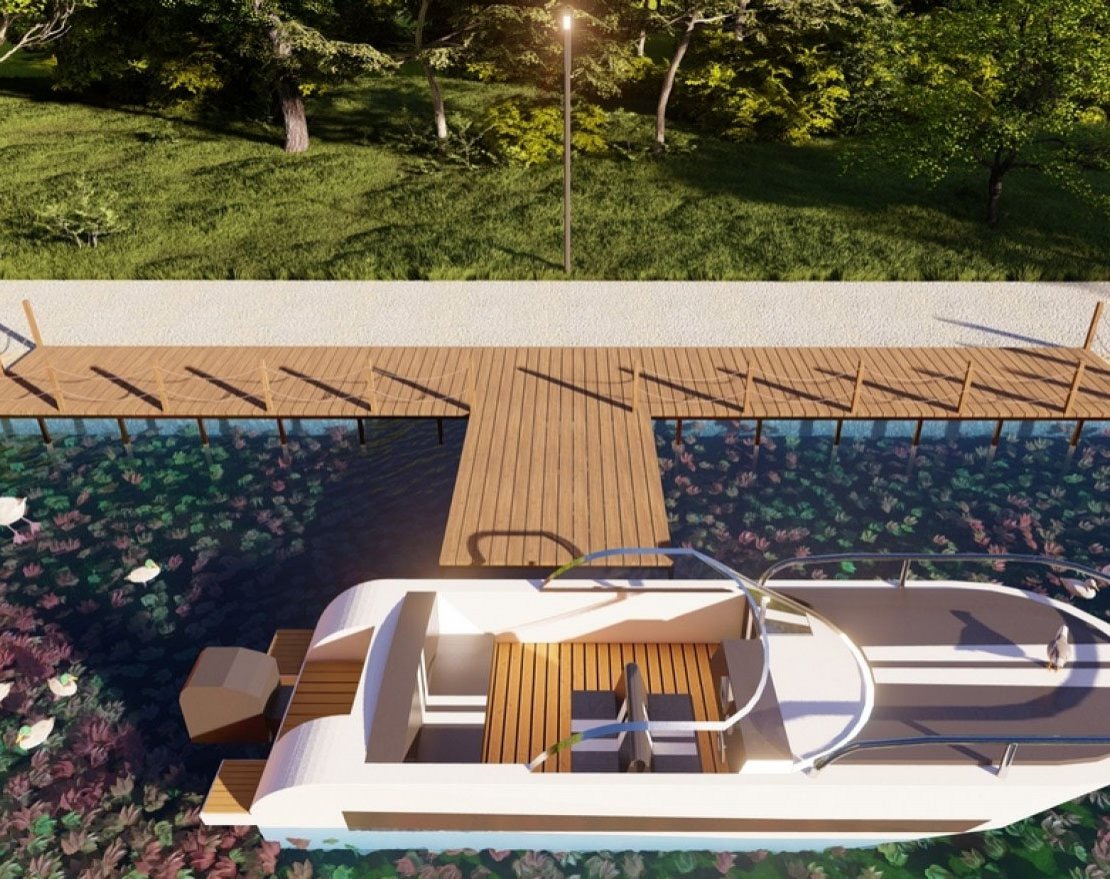 Пирс будет укреплен сваями, что обеспечит его стабильность и прочность.