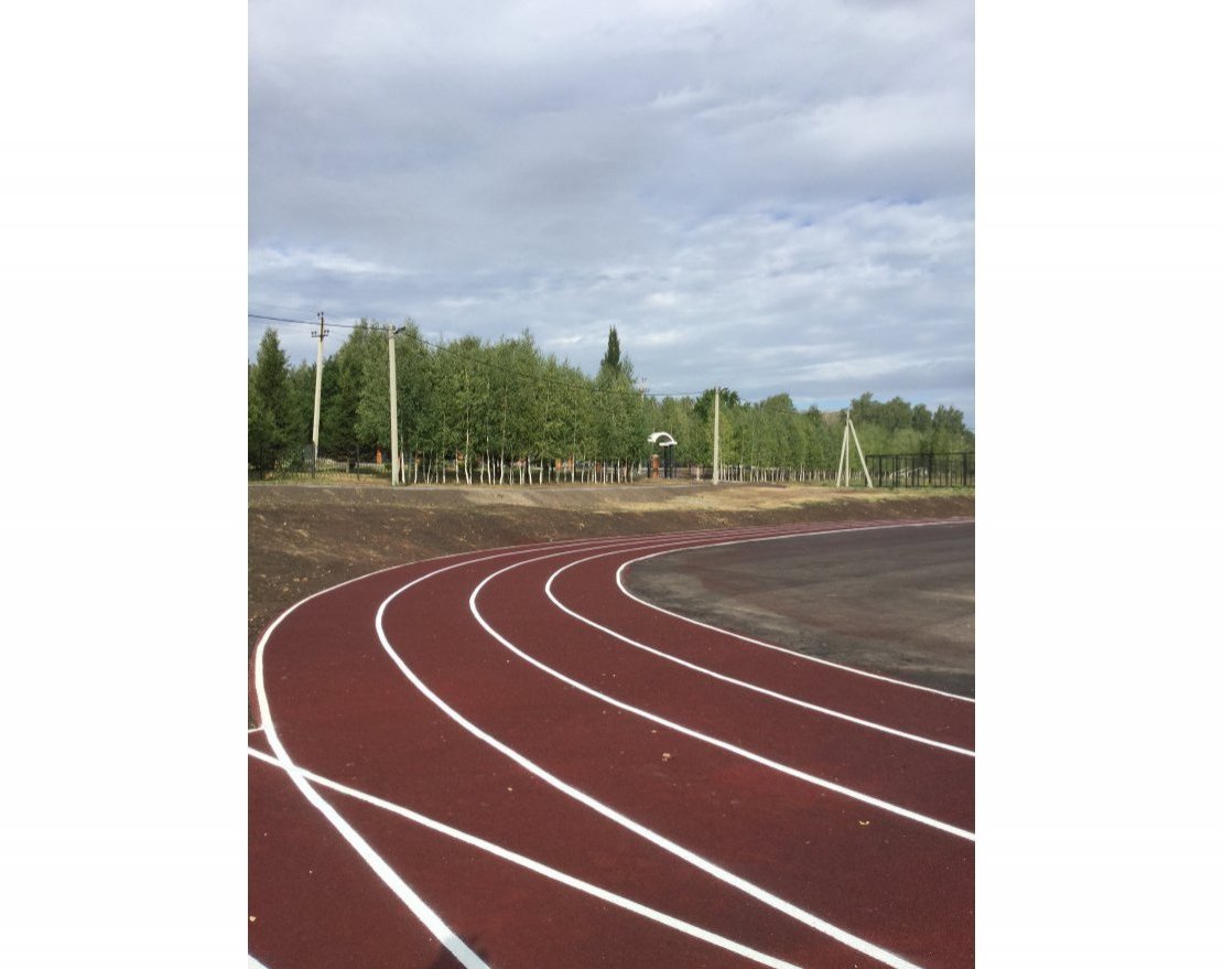 Разметка выполняется белой износостойкой краской поверх резинового покрытия.