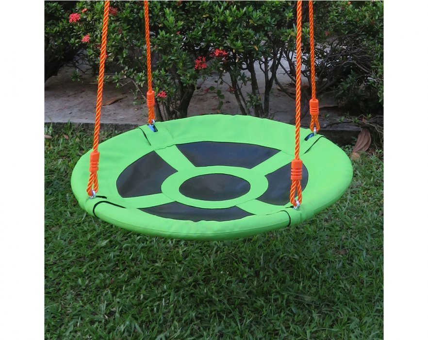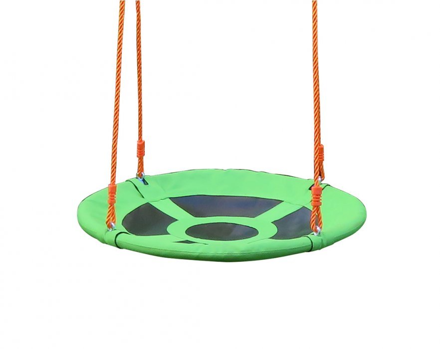 Комплекс включает в себя: качели - гнездо, качели для малышей и горку.