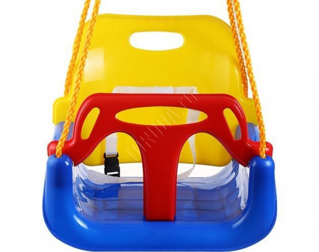 Качели состоят из трёх частей, в комплект входит ремень безопасности.