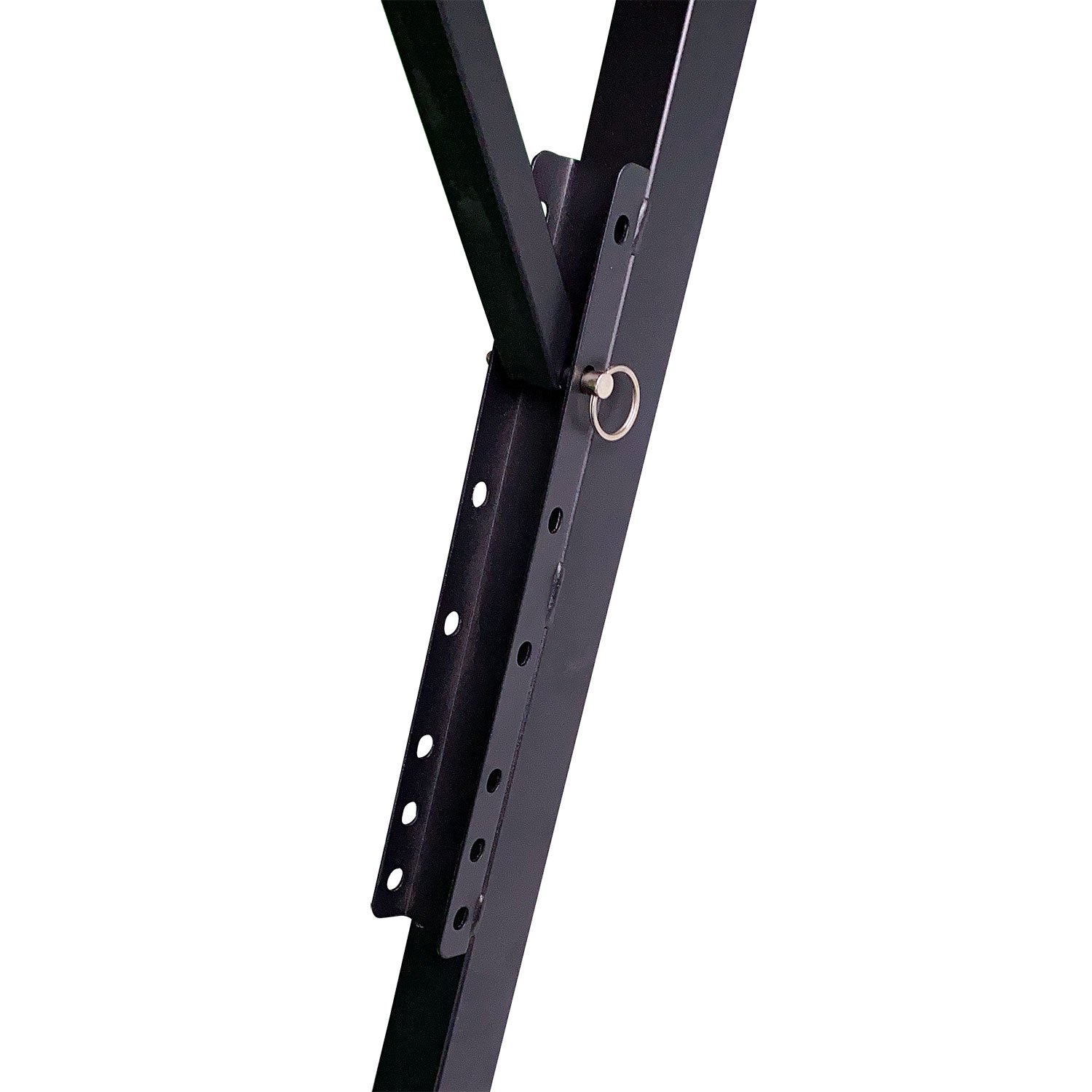 Скамья имеет складную конструкцию с фиксацией собранного положения с помощью 2 штырей с кольцом.